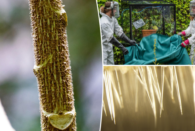金皮树在这儿可是个“大宝贝”,被小心翼翼地关在玻璃罩里,只有专业园艺师敢靠近。工作人员还得穿得像防化部队一样,生怕一不小心被扎一下。