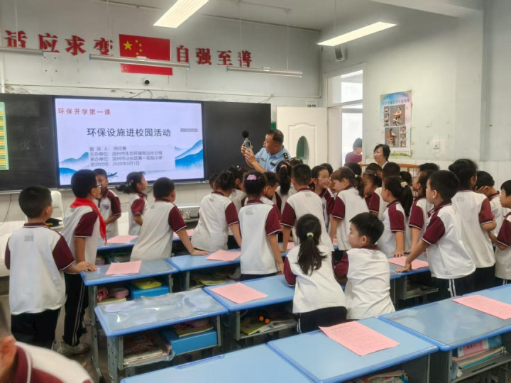 为深入践行生态文明理念,提升青少年生态环境保护意识,9月1日,滨州市生态环境局沾化分局以“环保设施进校园”为主题向沾化区第一实验小学的同学们送上了一堂别开生面的环保开学第一课活动。